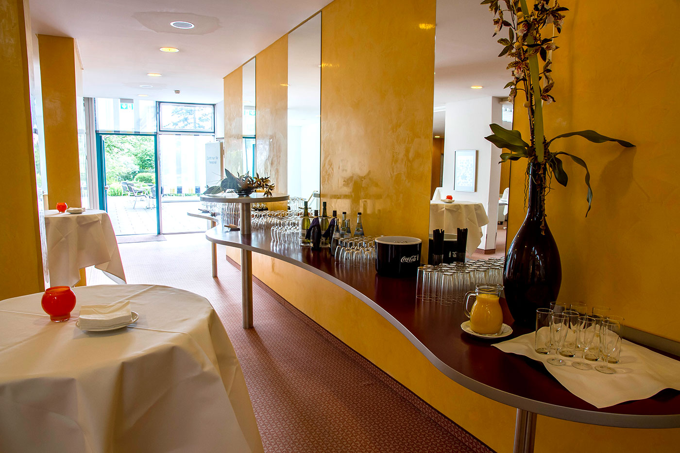 Das Konferenzfoyer mit Zugang zur Terrasse kann zusätzlich für entspannte Pausen genutzt werden. Das Best Western Parkhotel bewirtet Sie hier gerne.